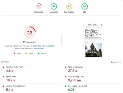 Both instances share a major cause of such subpar performance: too much JavaScript. PageSpeed Insights reported that CNN.com has an opportunity to reduce loading time by nearly 14 seconds and NYTimes.com by almost 4 seconds if they remove scripts they don’t use. While some might argue it isn’t a big deal if users have high-speed data, assuming everyone has, is a mistake.