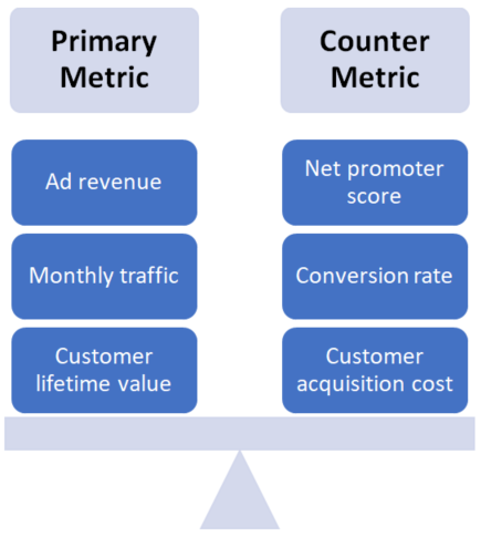 To mitigate the risk of spurious correlations, experts advise choosing a metric that’ll be affected by the change in the design directly. On-site metrics, such as bounce and click-through rates, are ideal options. Additionally, include another metric for counterbalancing.