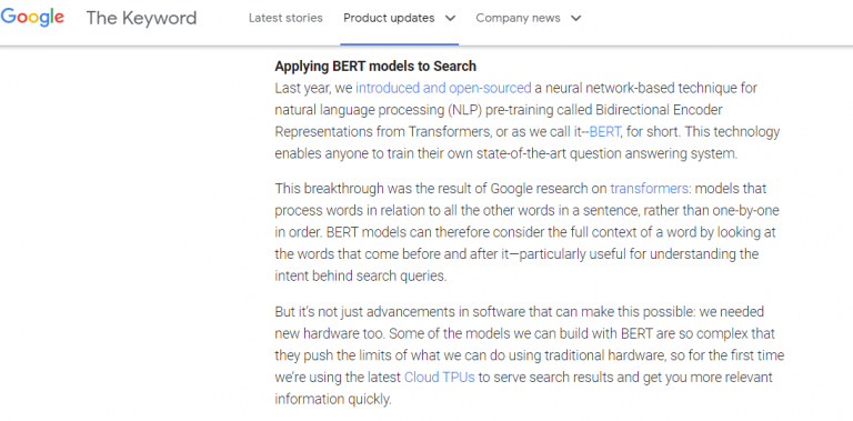 A mouthful, this is basically a method for natural language processing (NLP). In other words, it helps the algorithm better understand the link behind search query and intent.