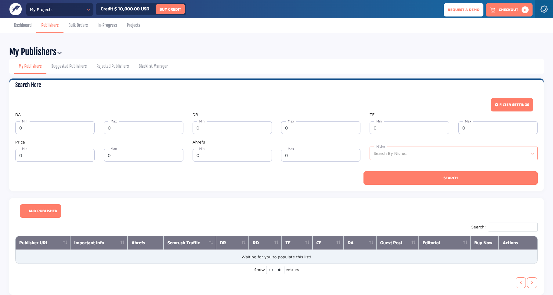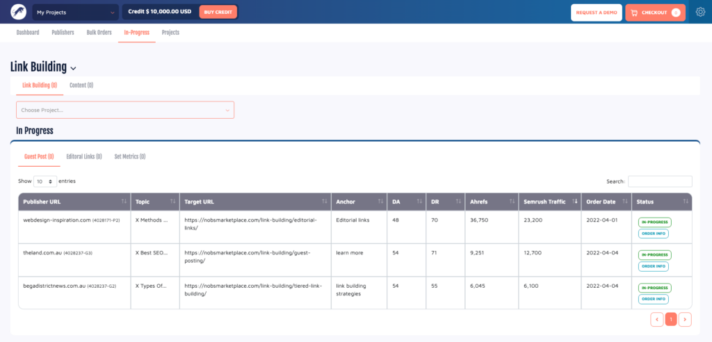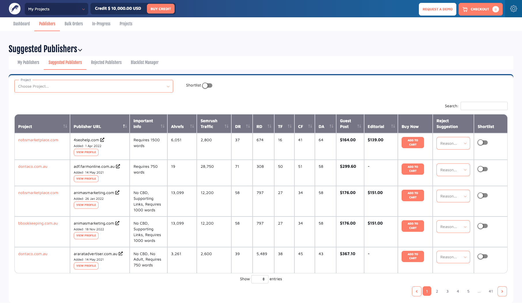 You can still request publishers on a project level, but if you go to ‘Suggested Publishers’ you’ll be able to see all suggestions across every project. You can still order from here and you’ll be able to request more publishers from the one tab.