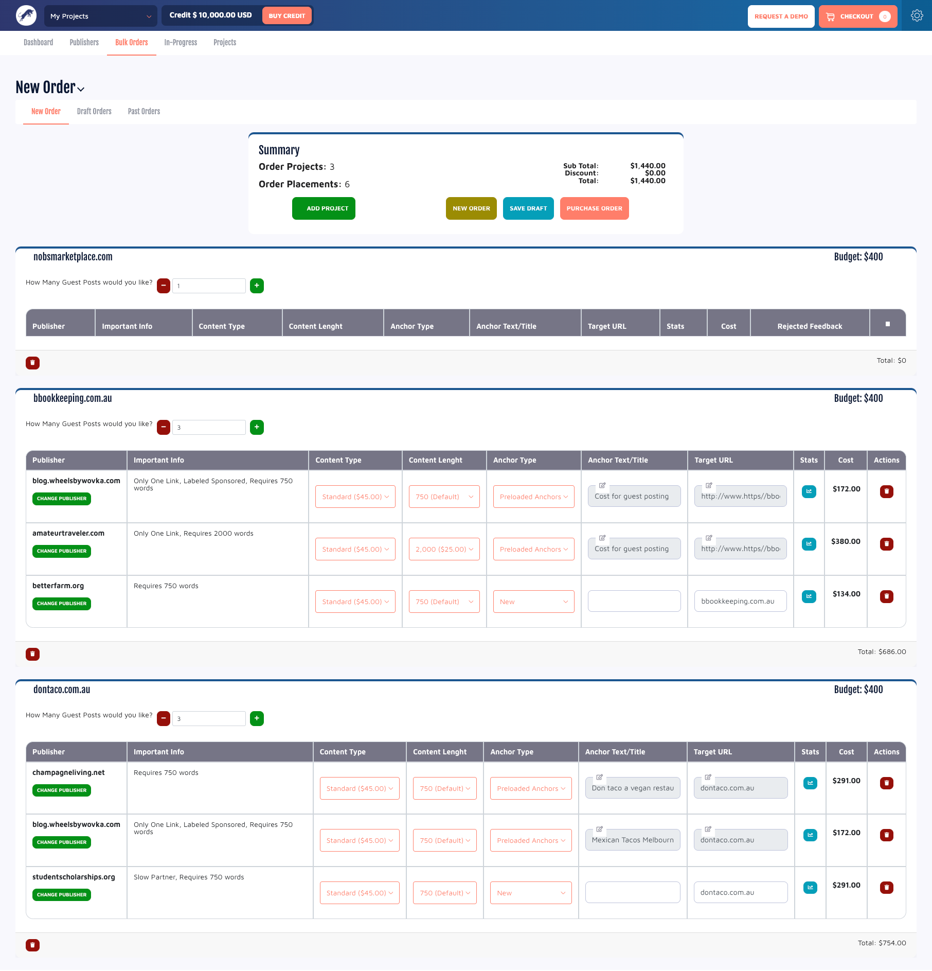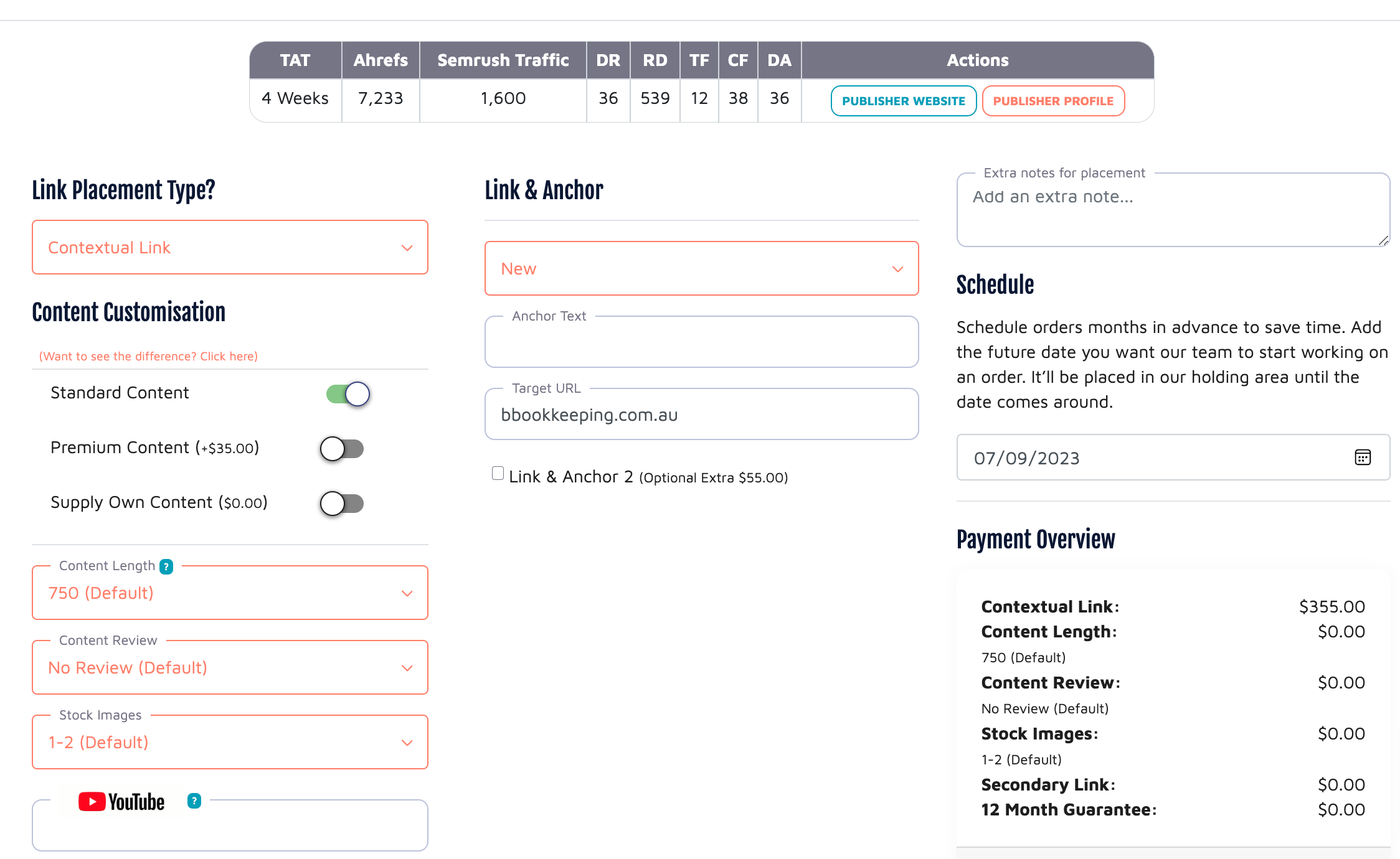 We all know having 10 links land on the same day doesn’t look natural. This is why we have our Schedule feature. Place your orders but space them out to be worked on at different times