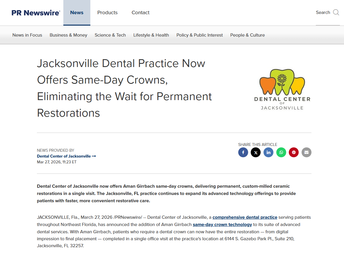 News content provided by a dental clinic in Jacksonville, FL, with links to their pages