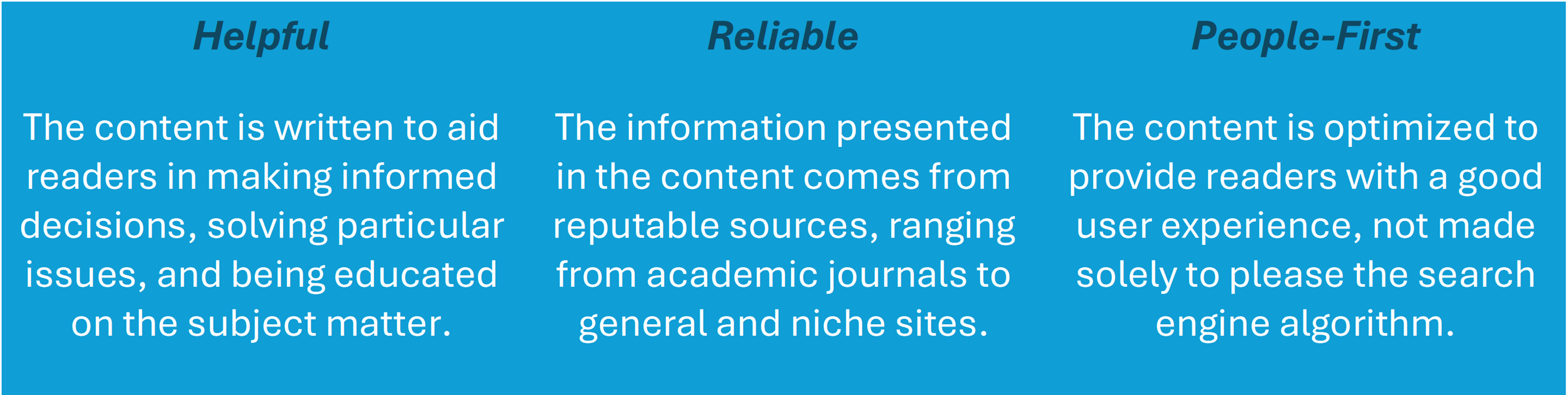 If this sounds vague, you aren’t the only one. Websites struggle to create content that gives the results they want to see because specifics are scarce. The closest we have is Google’s E-E-A-T criteria, but it’s just as ambiguous.