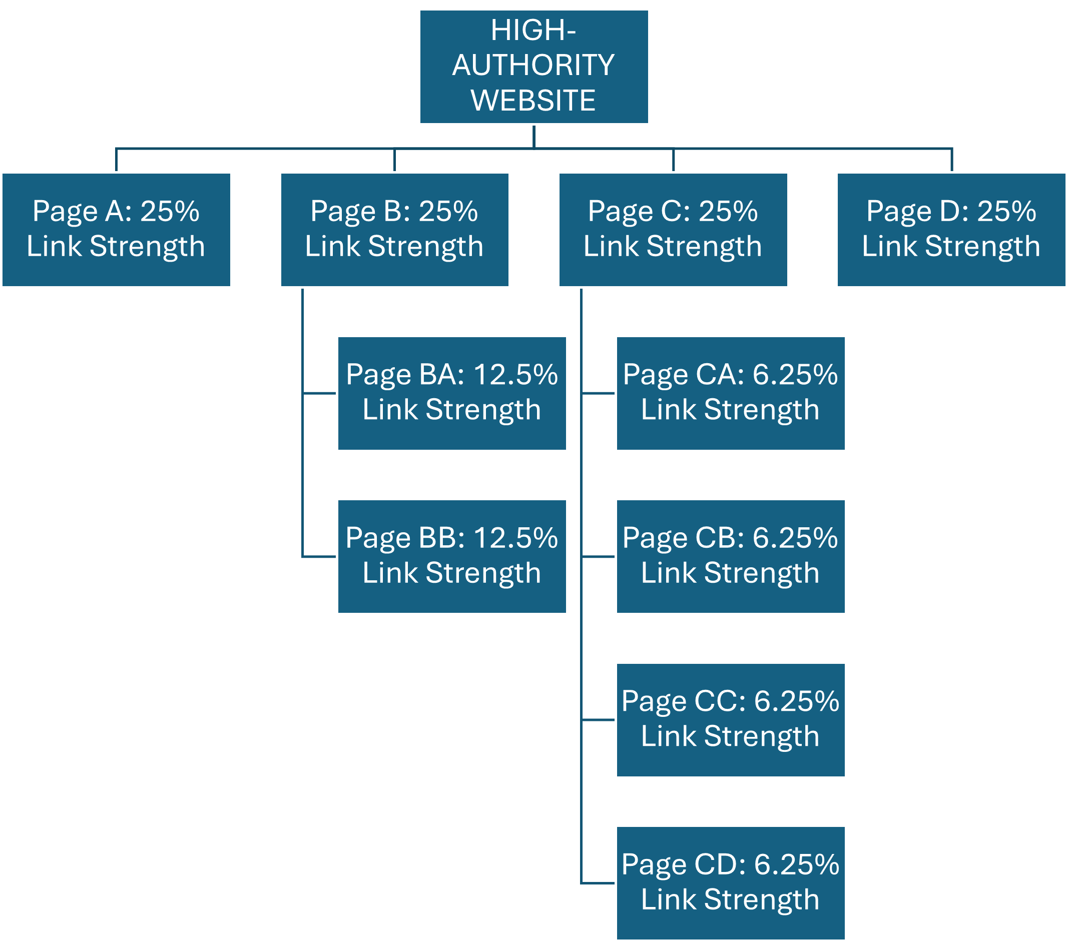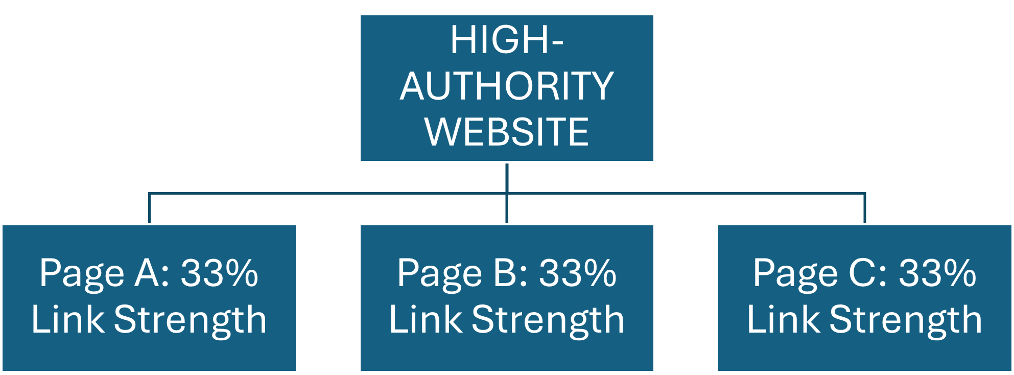You can afford to be flexible with this setup, adding more links as the content calls for it. However, keep in mind that link equity (also known as “link juice”) dilutes with every link added. Think of it like pouring a pitcher full of fresh juice into glasses. Every glass added reduces the amount of juice each glass gets.