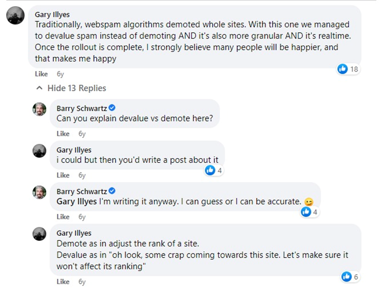 It’s the last comment in the screenshot above that sums it up. Websites will no longer get in hot water by harnessing suspicious, low-quality links. However, these links will no longer affect a site’s ranking in search results.