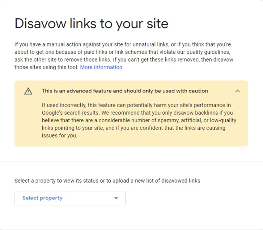 Once the file is ready, put it aside for the time being. The next step is to go to the disavow tool to specify the domain or URL for which to disavow links.