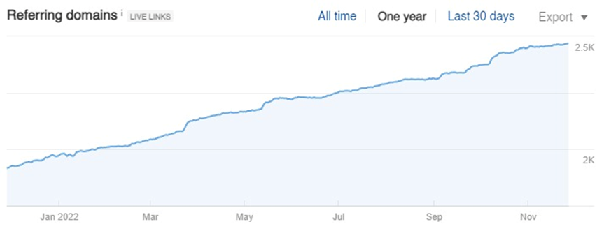 - The Referring Domains metric counts the number of unique domains backlinking to the target link. The graph below (which you can access in the old Overview panel) can help spot sudden spikes, often resulting from link spam.