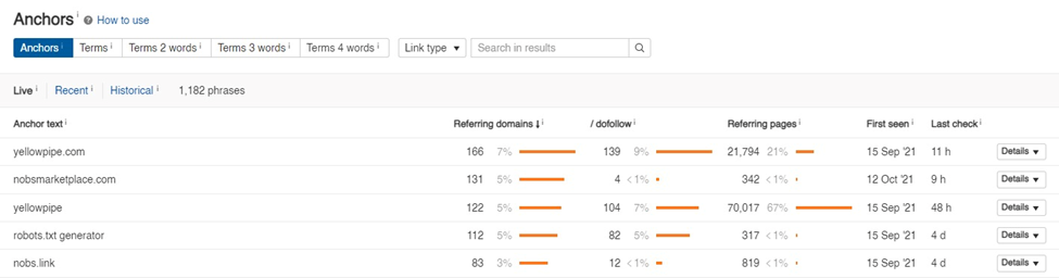 - The Anchors metric breaks down every anchor text backlinks use to lead to the target site. The table below can assist in detecting over-optimised anchor texts, which are often red flags for disavowing their links.