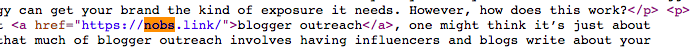 Once you find your link, check the details after the link. If it says rel = nofollow, this means it’s a nofollow link. If it’s rel = dofollow, it means it’s a dofollow link. This is an example of a nofollow link.