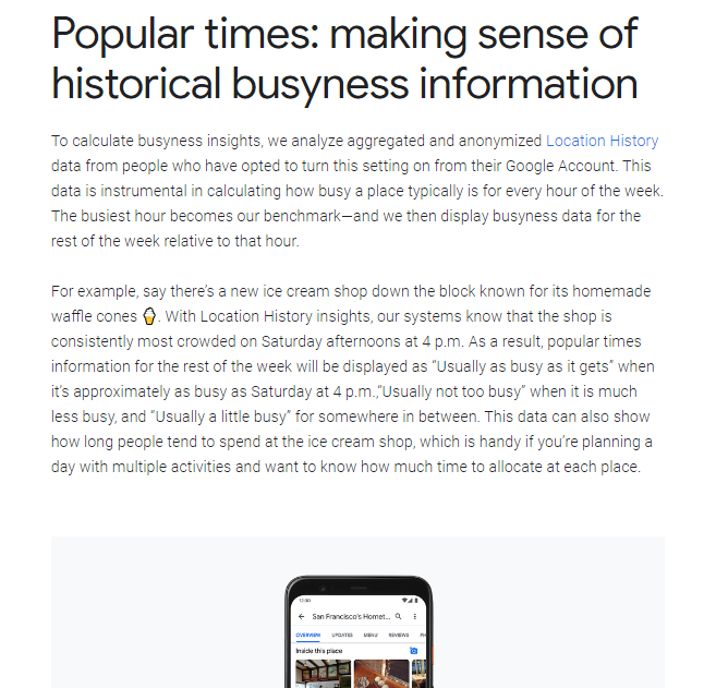 Back in 2016, Google launched a feature that shows how busy a place usually gets. When you click on a business on Maps, it will display a simple graph that shows you the best times to go there, and what times to avoid, based on historical data.