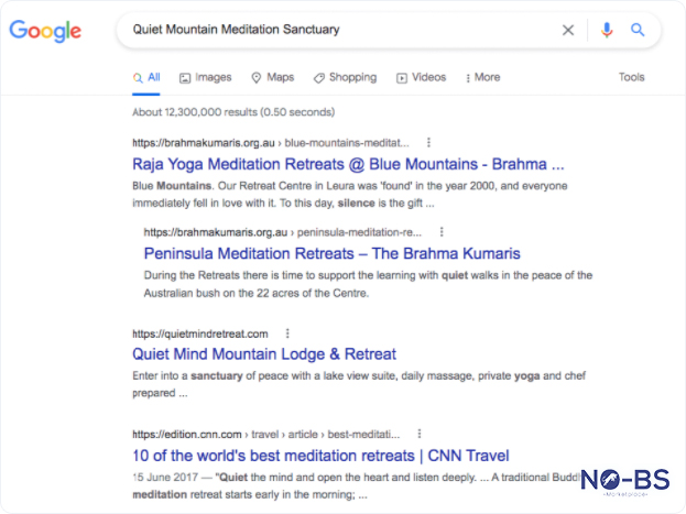 But, if you were to choose a long-tail keyword instead like ‘East Coast Beach Yoga Retreat’ or ‘Quiet Mountain Meditation Sanctuary’ there is likely less competition for these phrases and the specific details are more likely to hook your ideal visitor.
