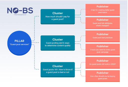 Clusters give you the freedom to branch out and explore new ideas while staying within the guidelines, so you don’t stray too far from your pillar topic. Here is a visual explanation: