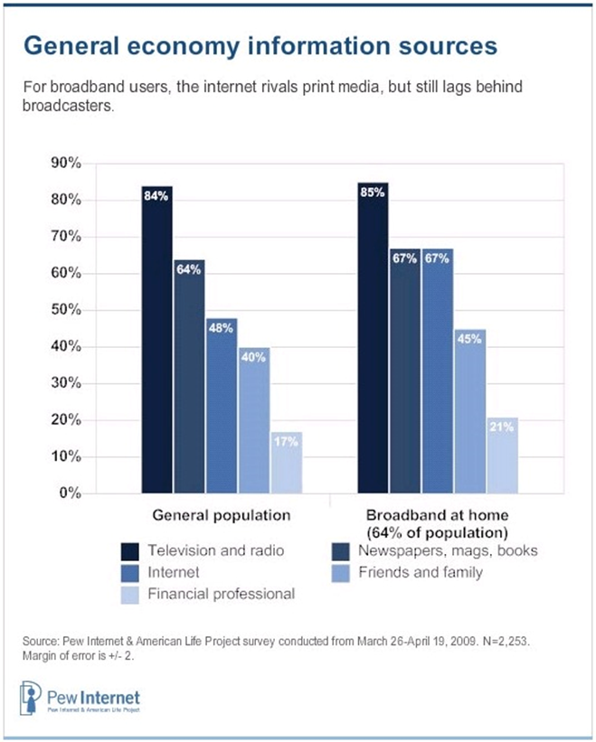 There are numbers to back this trend. A Pew study published near the end of the Great Recession found that more than two-thirds of people in the United States relied on the internet to help them through such hard times. This is amid the dominance of broadcast and print media at the time.