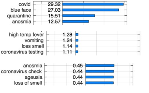Gilbert cites queries for COVID-induced anosmia or loss of smell as an example, cited in this multinational study published last year. The correlation in anosmia-related queries relative to confirmed COVID cases was high.