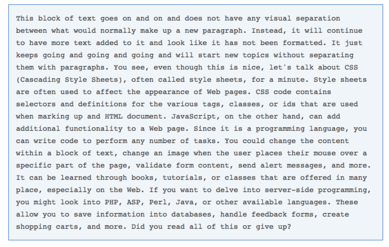Here’s an example of poor formatting: