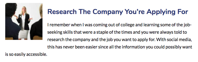 This is an example of a poor quality image below, because it’s blurry, it doesn’t offer clear focus, and because it’s not in line with the rest of the content in terms of formatting. You’ll see the image is positioned above the title instead of being in line with it.