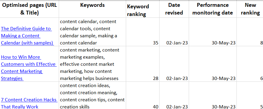 The end goal of this activity is to identify specific content to update, keep, optimise, and take off to improve your website performance and ranking.