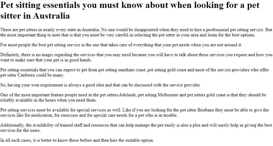 Over time, search engines – especially Google – found the practice inconvenient to users. Let’s go back to the example above. It’s supposed to talk about things to remember when looking for a pet sitter in Australia. But after going through it, all I got was: