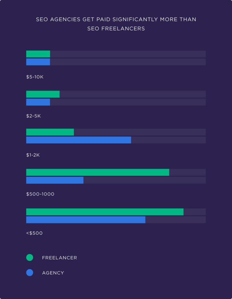 There are ways to justify charging high – and you’re already doing the first: being an SEO agency. Returning to Backlinko’s study, agencies earn eight times more than freelancers when they charge USD$10,000 or more annually. The trend is more or less the same for figures no lower than USD$1,000.