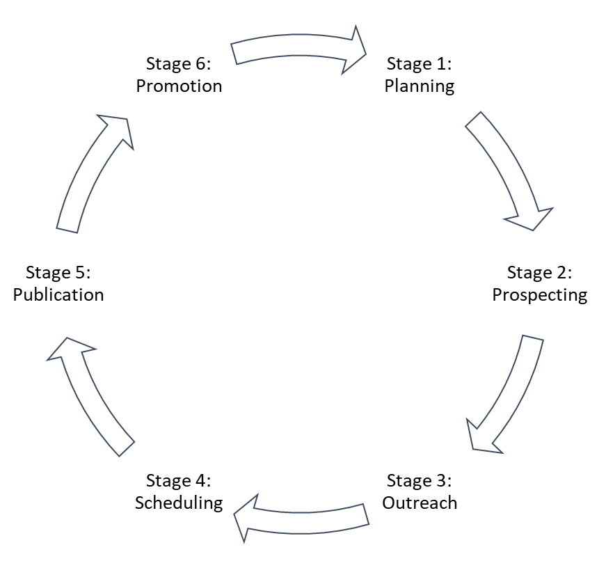 According to Jeff Bullas, a famous influencer among Chief Marketing Officers, a typical guest posting strategy consists of six stages.