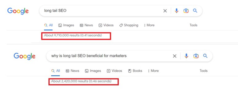 Besides lower search volume and competition rate, a study of 305 million searches revealed that 91.8% of all search queries are long tail keywords. Ranking high for long-tail keyword searches assures you’ve created compelling content that attracts more qualified leads.