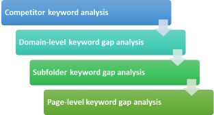 Once complete, you can proceed with the more meticulous keyword gap analysis. With the keyword data, this next step looks for gaps that can be realistically closed with proper SEO. Keyword gap analysis gets more thorough the deeper into the sitemap you go.