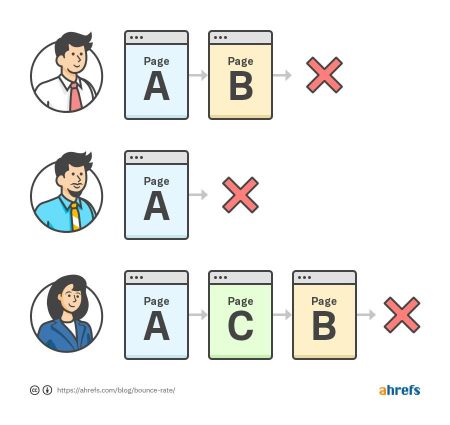 - Exit rate Often confused with bounce rate, the exit rate shows the number of sessions that ended on a particular page. Again, this metric is vulnerable to data skewing; consider the diagram below.