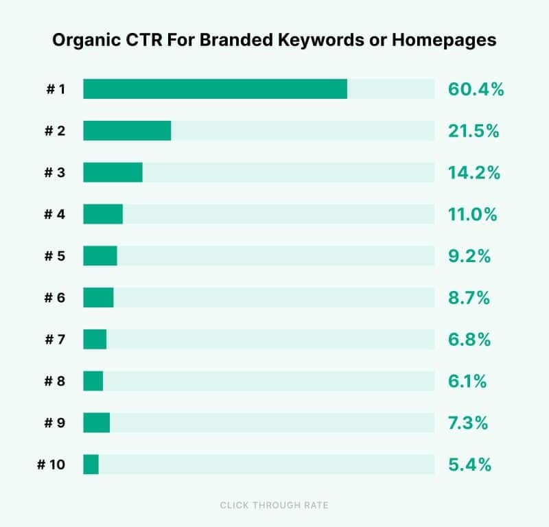 Note that 100% search visibility is impossible. People will inevitably click on more than one result as they search, even if yours is on the coveted top spot.