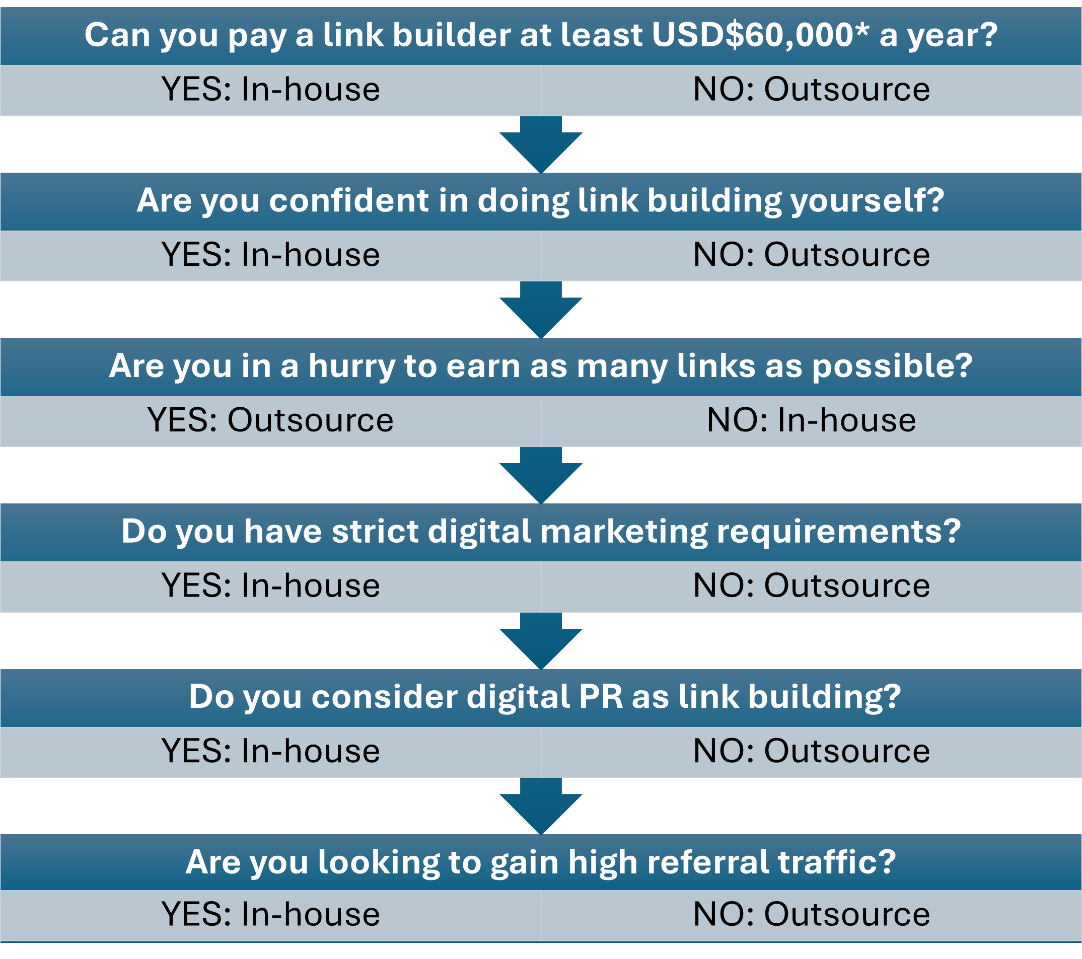 Asking yourself these questions is also an exercise in tempering expectations. Outsourcing link building to professionals may be less costly, but don’t expect them to be on the same wavelength or even share the same work culture as your company. Collaboration doesn’t need any of those, only the willingness to work together amid both parties’ differences.