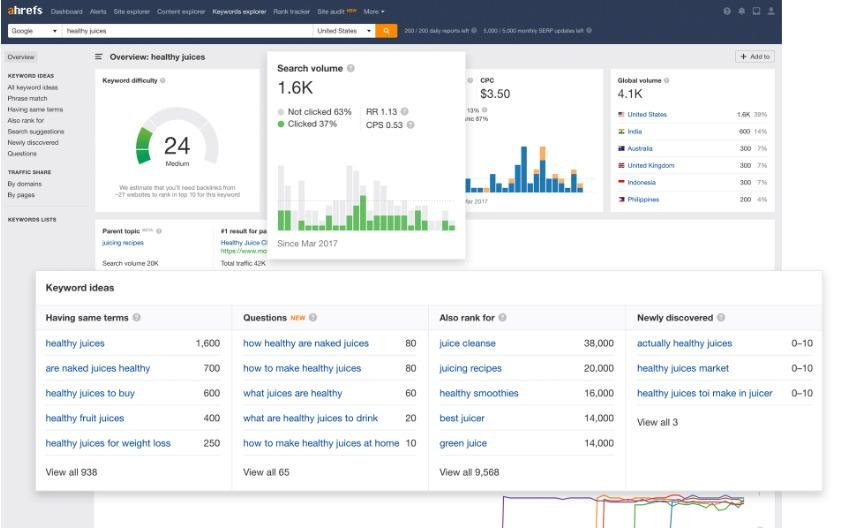 There can’t be on-page and off-page SEO without target keyword research. This process lets SEO content writers know the relevant keywords people commonly look for in search engines and pick the most suitable ones for the write-up they’ll make. Analytics tools like Ahrefs make this step more convenient.