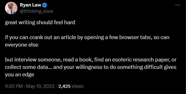 I came across this Tweet (or post) by Ahrefs Content Marketing Director Ryan Law, and I feel every SEO content writer should live by it.