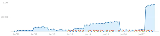 Penguin was spread out across six updates, gradually introduced over a four-year timeline. The updates affected 3.1% of English search queries (and 3% of non-English ones), but their impact was just as daunting as Panda. Below is the traffic for a site hit by Penguin. (4)