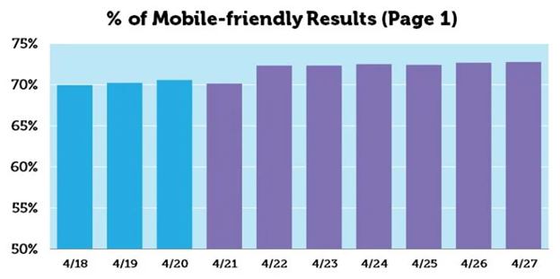 The Internet was still reeling from the Panda and Penguin sweep, so some site owners were understandably nervous. However, data from Moz showed that many sites had anticipated the update, with around 70% of first-page results tagged as “mobile-friendly.”