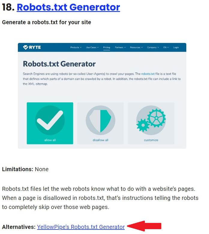 Free-tool backlinks are so valuable that sometimes competitors can’t help but link your free SEO tools on their blog pages. The excerpt below comes from a post in a social media marketing firm; the link on the bottom leads to our Robots.txt Generator.