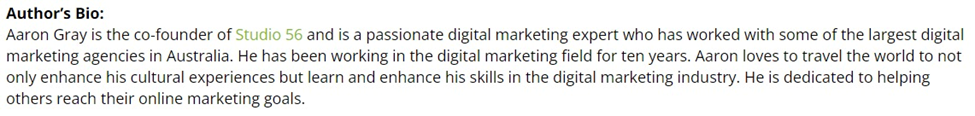 If you still want that author bio after this, experts recommend not going overboard with the links, lest you earn Google’s ire. There’s no ideal number of links, but most experts agree that between one and three is acceptable. Here’s an example from one of my guest articles.