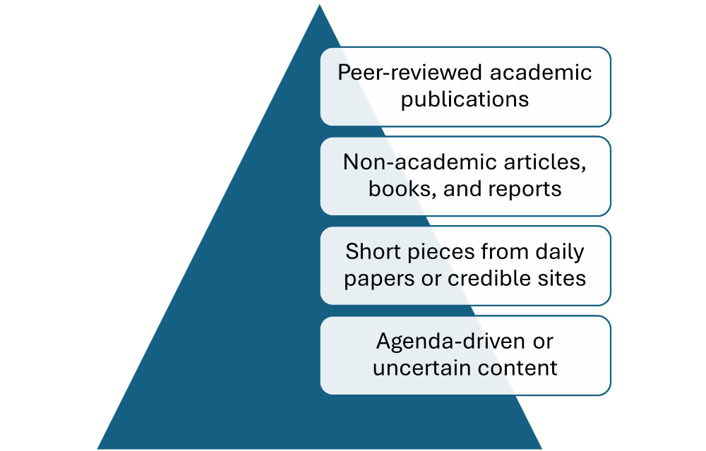 4. Guptill A, Delf L, Drummond R, Kelly K. Four Tiers of Sources and How to Tell the Difference. openoregonstateeducation [Internet]. 2022 Oct 1; Available from: https://open.oregonstate.education/goodargument/chapter/four-tiers-of-sources/