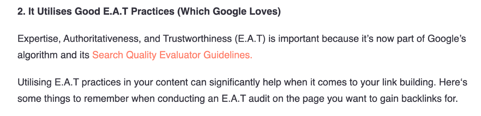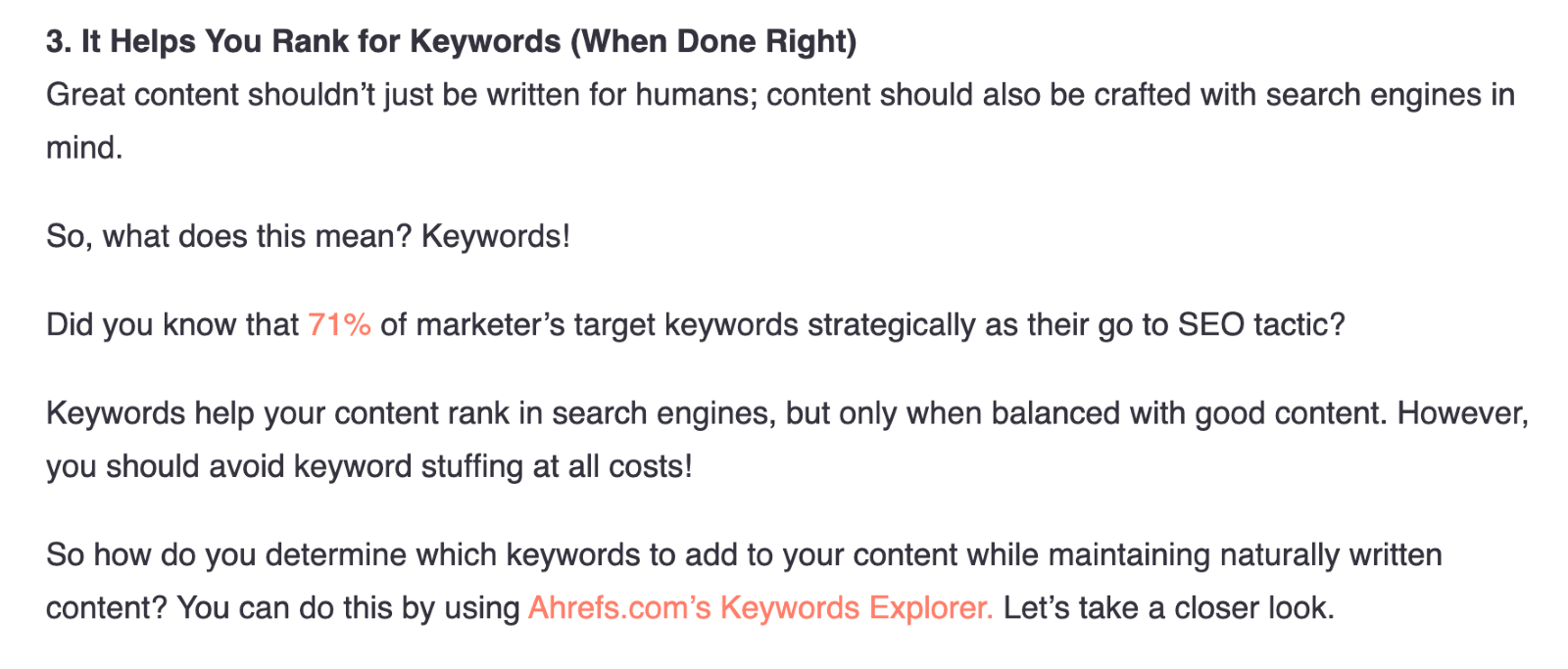 You shouldn’t place your internal links just for the sake of it. That won’t help your readers. When browsing through content, a reader is more likely to click on a link they think will provide useful information to enhance what they’re already reading. When placing a link within your content, ask yourself if it’s worth diverting from the main content.