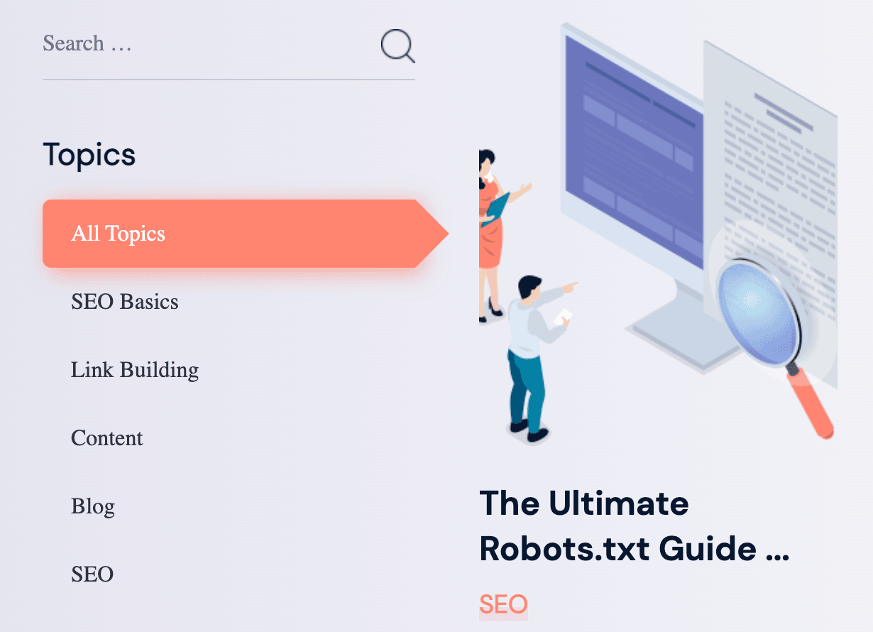 - Sidebar links: These are navigational links that point visitors to popular website content, especially on the blog page.