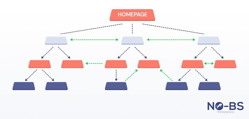 With internal linking, you establish a relationship between your web pages which creates a hierarchy that directs search engines and users throughout the content. In this case, the homepage links are the highest in the hierarchy and are more authoritative. That then spreads to other pages in the order of their importance and authority.