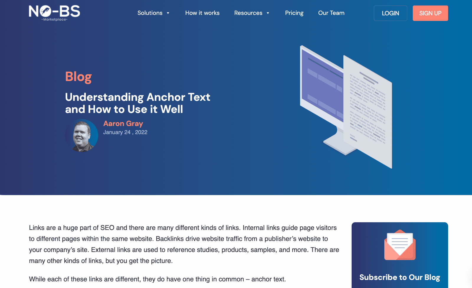 Ideal spots for contextual blog links include pages, guides, resource pages, or images. In the example above, it helps pass equity and authority from this web page to the one on anchor texts. We’re also helping our readers understand the context. Always remember that contextual links help readers find your content and help them discover other related and useful information about a subject matter.