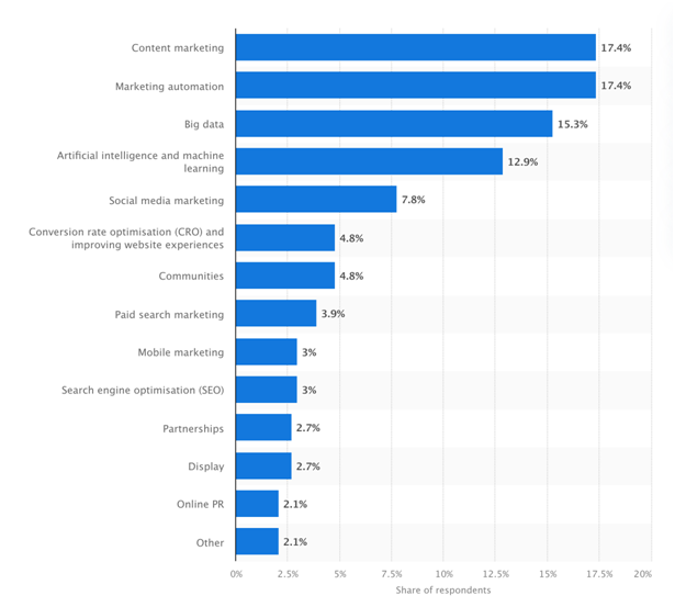 Furthermore, marketers worldwide in 2020, identified the most effective online marketing strategies, as shown in the following chart: