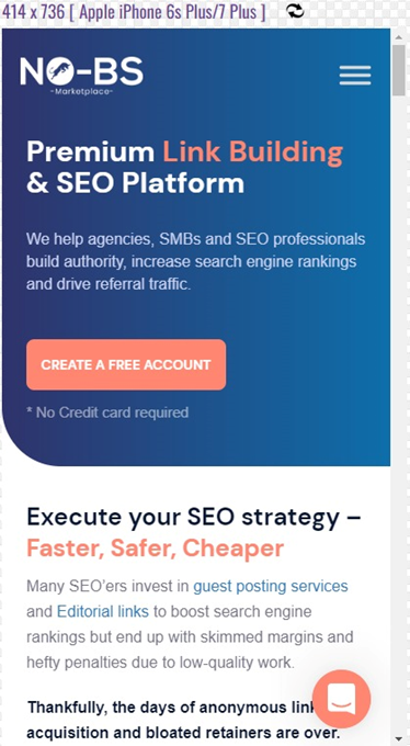 Here are the results for NO-BS Marketplace’s mobile website.
