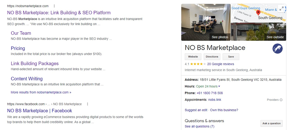 Why do the first three results warrant so much attention? Users want to find what they want or need right away, and they often do so among those results. It’s all a matter of how relevant the result is to their query. If you’re searching for ‘NO-BS Marketplace,’ the first result shouldn’t be anything but NO-BS Marketplace.