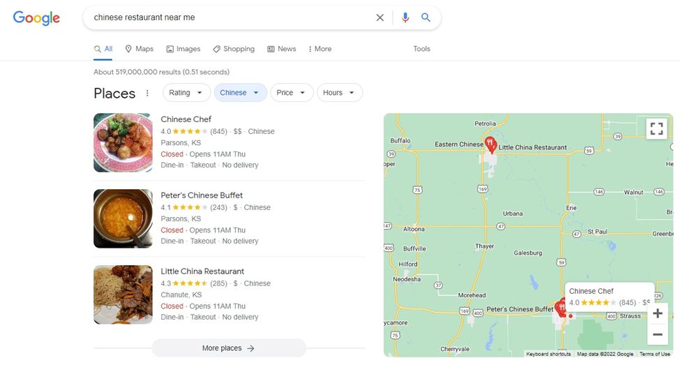 Sometimes, the queries don’t necessarily have to include a specific location. Users can type in ‘Chinese restaurant near me’ or to that effect.