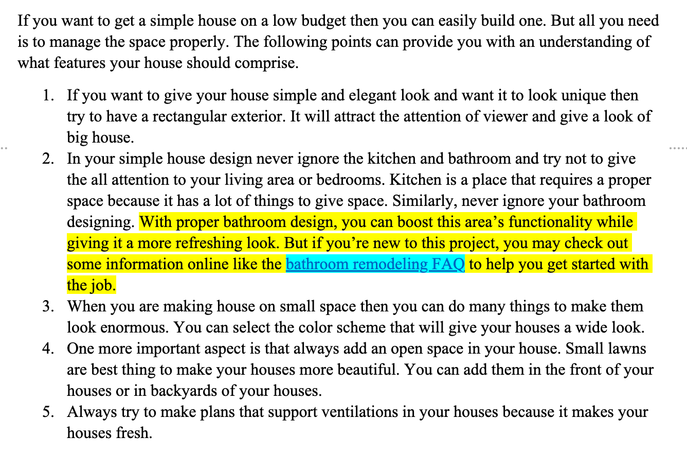 - Editorial Link: Your link gets added to an already existing piece of content but you add around 200-300 words extra to enhance the content to make your link look natural. Here’s an example of a before and after for editorial link.