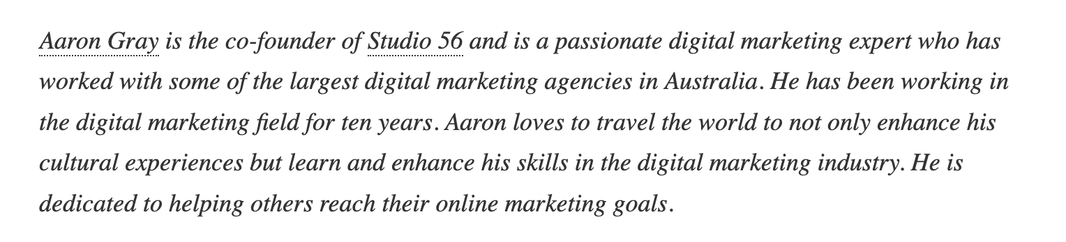 - Bio Link: Your link gets added to the author bio after a publisher shares your content. Here’s an example of a bio link.